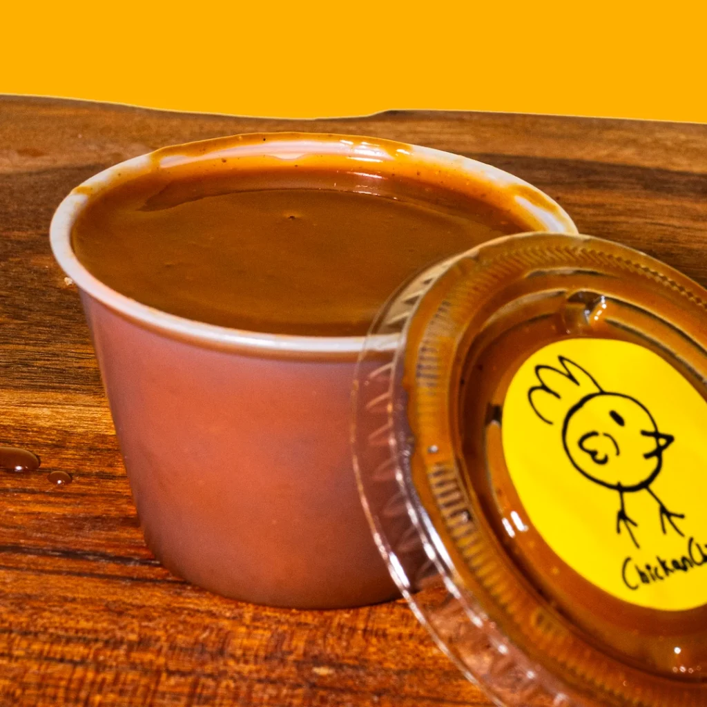 Aderezo especial Chick Sweet con notas ahumadas y dulces, un toque de especias aromáticas y un ingrediente secreto.